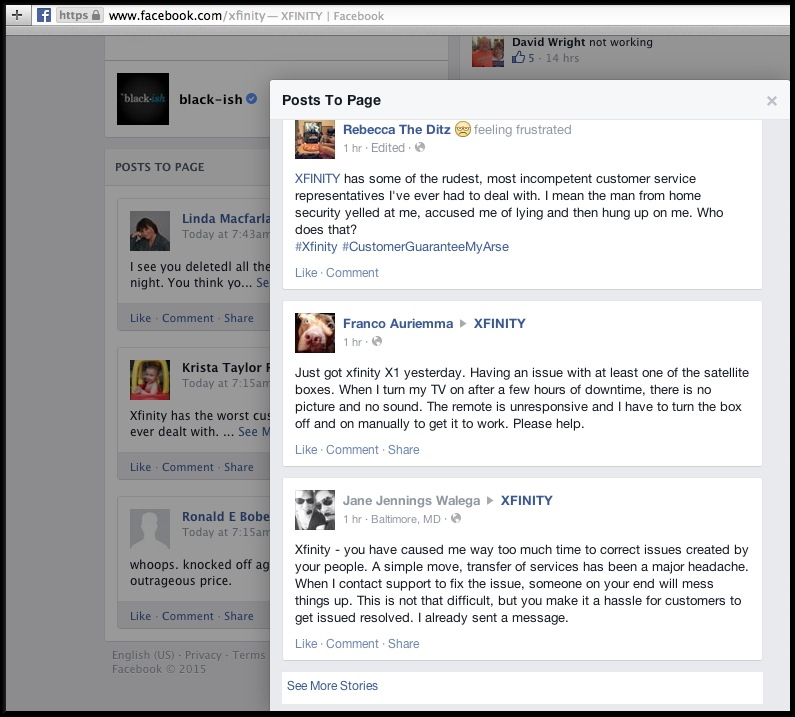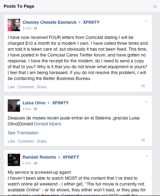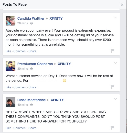 Last week, Slate Magazine addressed Comcast’s recent PR nightmares: “These moments may have felt extreme and viral-ready, but they were also symptomatic of an industry with a huge customer service problem.” As it turns out, Comcast’s ENTIRE Facebook page is extreme and viral-ready. By far the