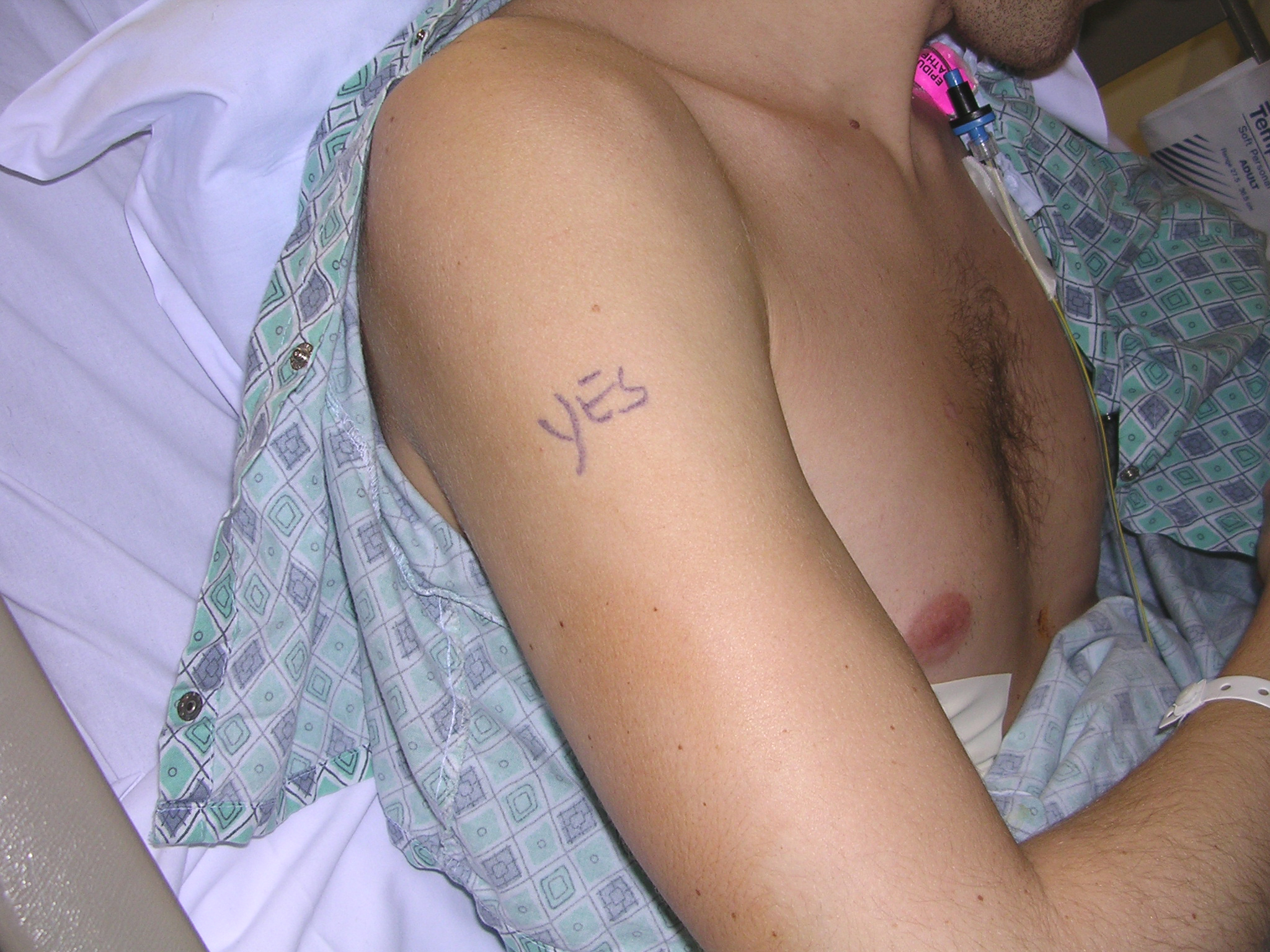 Before this particular lung surgery they wrote "Yes" on my arm to indicate the correct side
